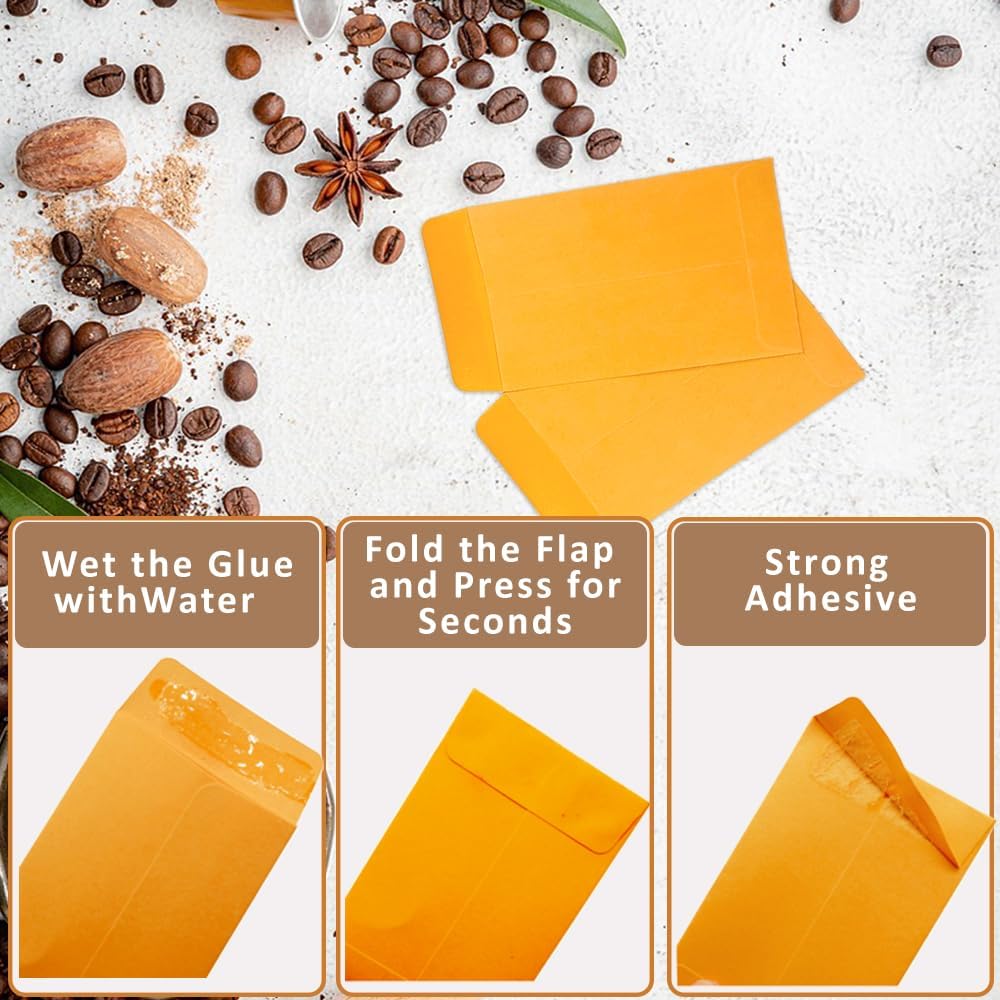 #1 2400 Pcs Small Coin Envelopes 2.25" x 3.5" with Gummed Flap, Yellow Kraft Mini Envelopes for Storing Keys, Stamps, Seeds, Tips and Small Items (2400)